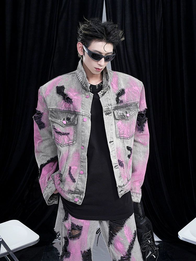Red Stained Short Denim Jacket / Wide Pants STD0056