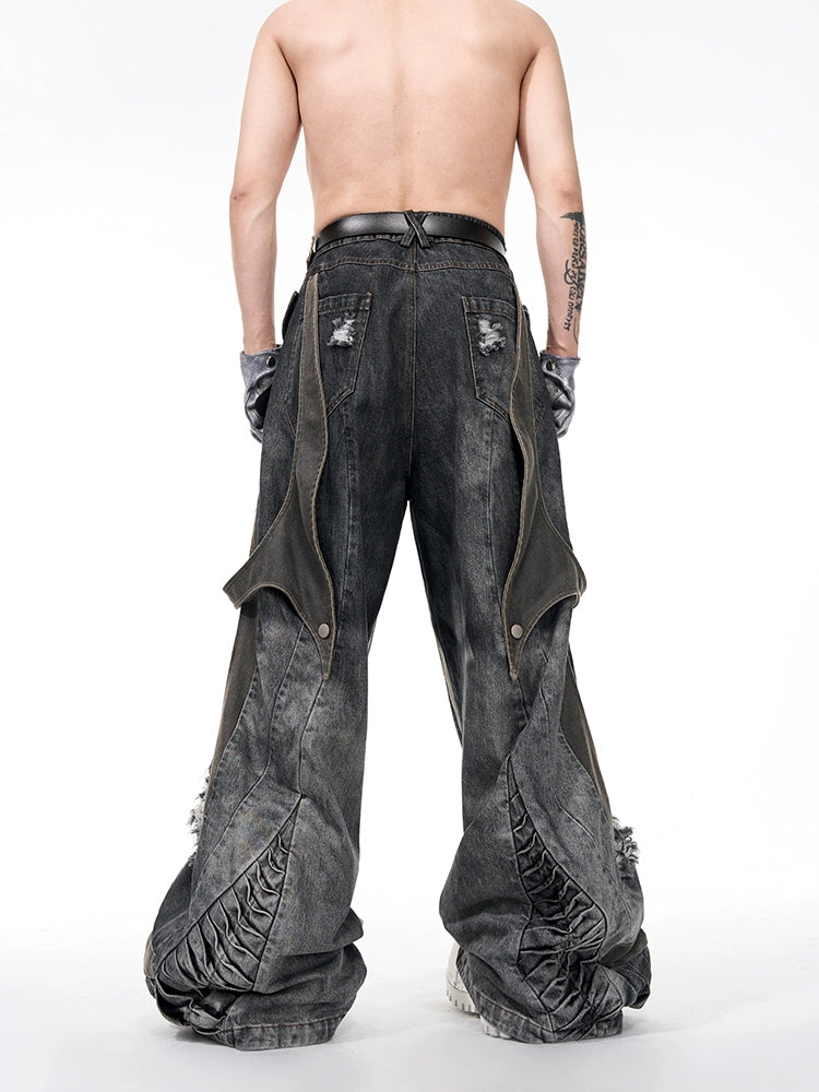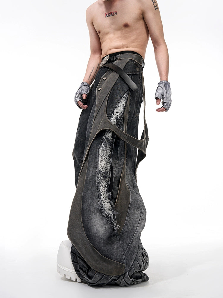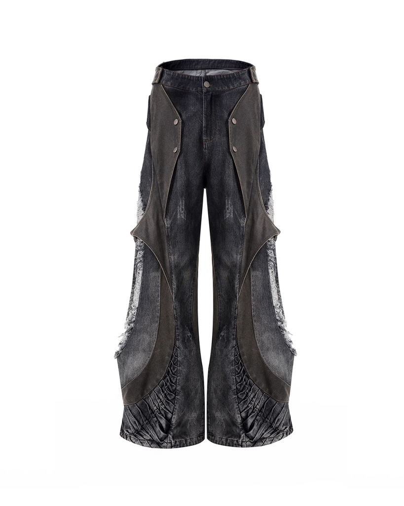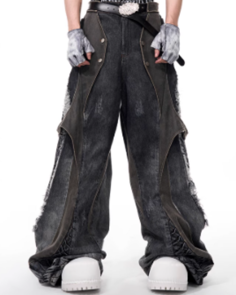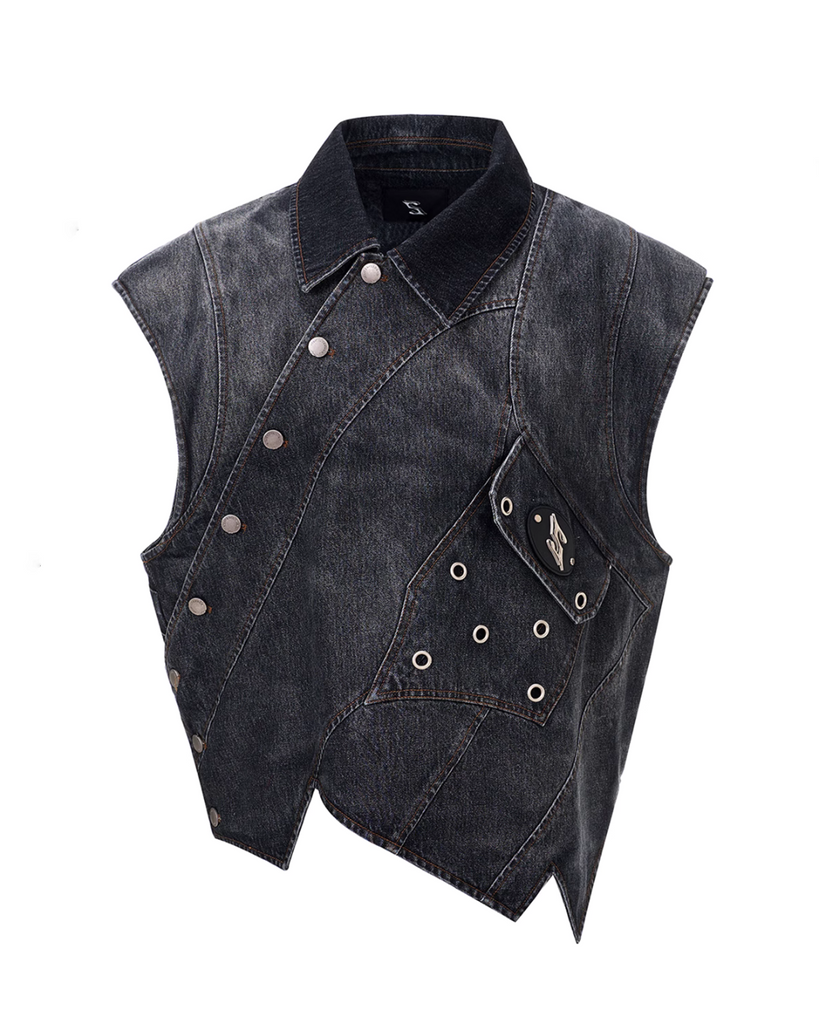 Structured Patched Hole Vest / Wide Denim Pants STD0047